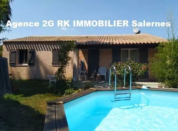 A Salernes, Var, dans un quartier calme proche du village et des commodités, nous vous proposons une villa de 90 m² de plain-pied composée d'un séjour double avec une cheminée Insert, d'une cuisine équipée indépendante, de trois chambres disposant de grands placards, d'une salle de bains (baignoire, lavabo et sèche serviette), wc indépendant. Devant le séjour, la terrasse couverte carrelée est exposée plein sud. le jardin est arboré et abri de jardin a été bâti. Une piscine hors-sol semi- enterrée complète cet ensemble avec un canal d'arrosage. Le terrain est plat, clos et arboré sur 714 m². Exposition sud. La maison est actuellement rafraîchie pour la vente (carrelages, peintures, volets alu,...). DPE en cours. PRIX EN BAISSE. V107.