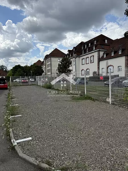 Terrain aménagé à usage de stationnement à Mulhouse (68100), accessible via une route goudronnée dans une propriété sécurisée par un portail électrique offrant également un accès piéton via une porte à code.