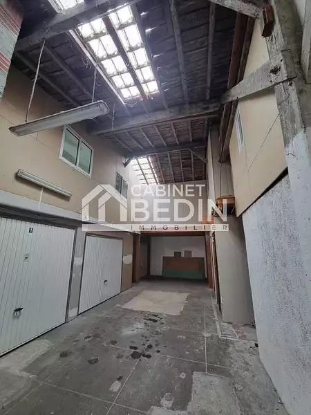 HANGAR LIBRE . Bonne situation pour ce hangar vendu libre. Beaucoup de possibilités:construction ( sous réserve du PLU), transformation en habitation, location de box, location de stationnements, du stockage. . . Actuellement le hangar est divisé en 2 espaces et il y a devant une cour de stationnement. La hauteur au faitage est d'environ 9 mètres.