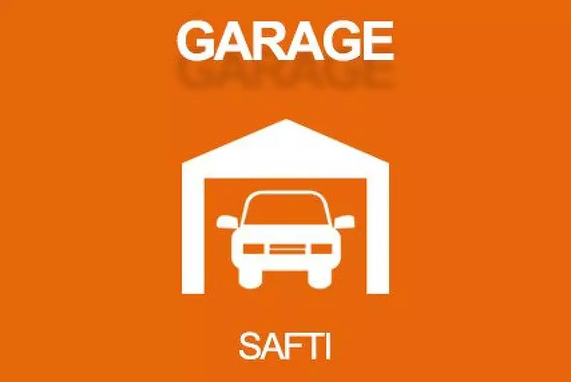 Garage d'environ 90 m² avec une grande porte, électricité + mezzanine.