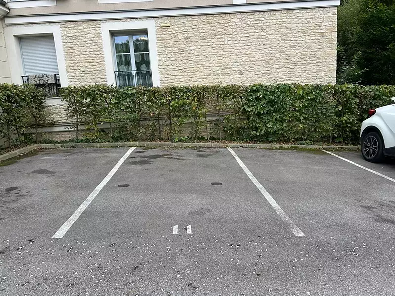 Place de parking extérieure sécurisé et fermé par un portail situé rue des Colverts à Bièvres. Accès par portail automatique avec télécommande. Surface d'environ 3 m x 6,5 m.