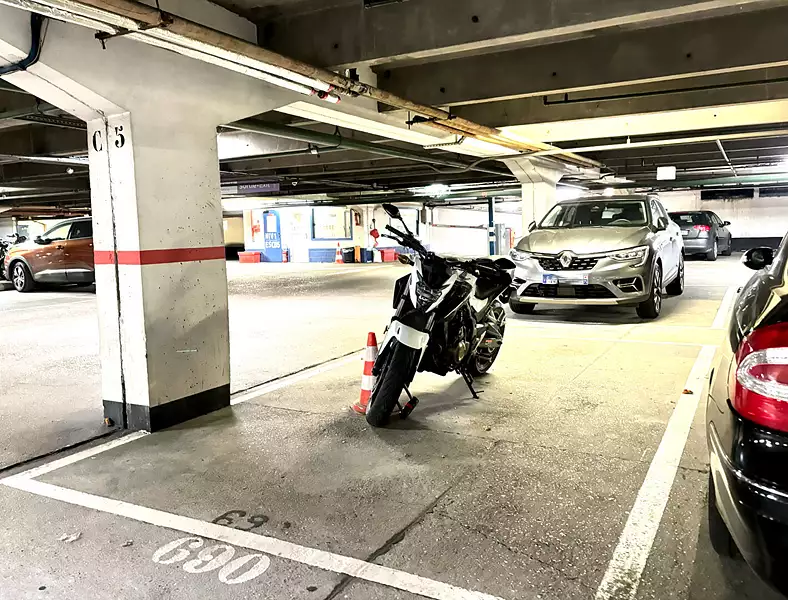 COURBEVOIE - QUARTIER CHARRAS, accès par la rue de Bezons, EMPLACEMENT DE PARKING en sous-sol. Parking sécurisé sous surveillance 7J7 24h/24, emplacement de stationnement face au poste de gardien. Copropriété de 1338 lots - dont 189 lots habitation. Charges annuelles : 438 euros.