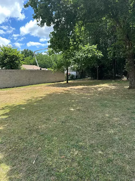 Le terrain est clos sur 3 côtés et partiellement arboré
