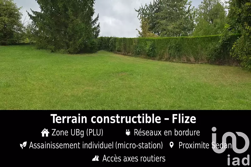 Terrain constructible de 1 000 m² situé sur la commune de Flize, à mi-chemin entre Sedan et Charleville-Mézières.