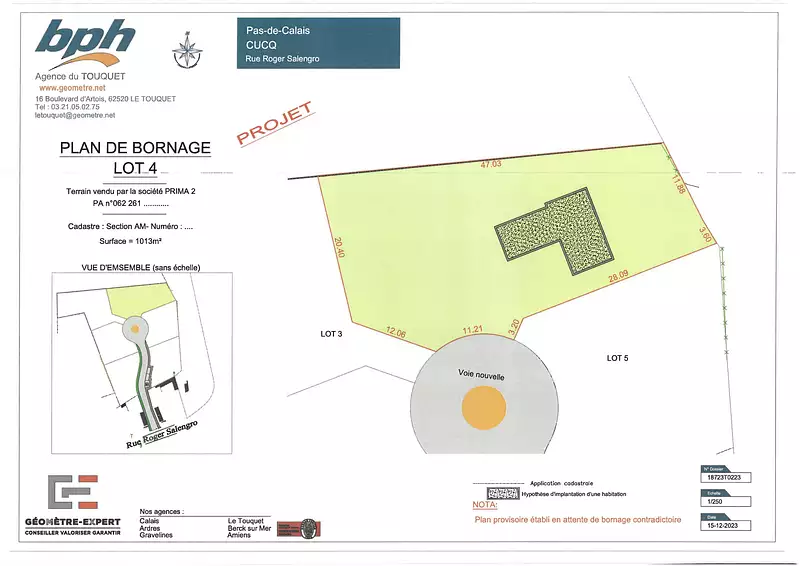 terrain plat constructible de 1 013 m2 à l'entrée du Touquet. Environnement calme