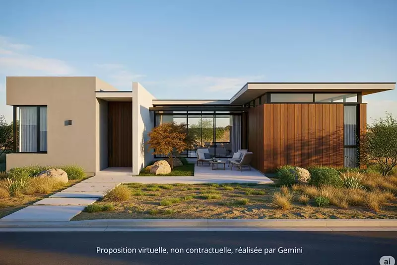 - Maison de plain-pied en L avec garage (120 à 140 m²), patio central lumineux