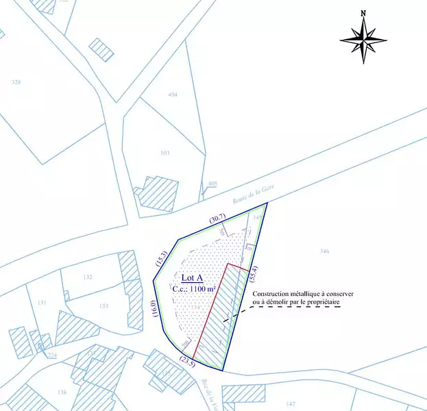 Terrain plat de 1100 m2 avec certificat d'urbanisme. Hangar déjà présent sur la parcelle. Viabilisation à prévoir. Assainissement individuel.