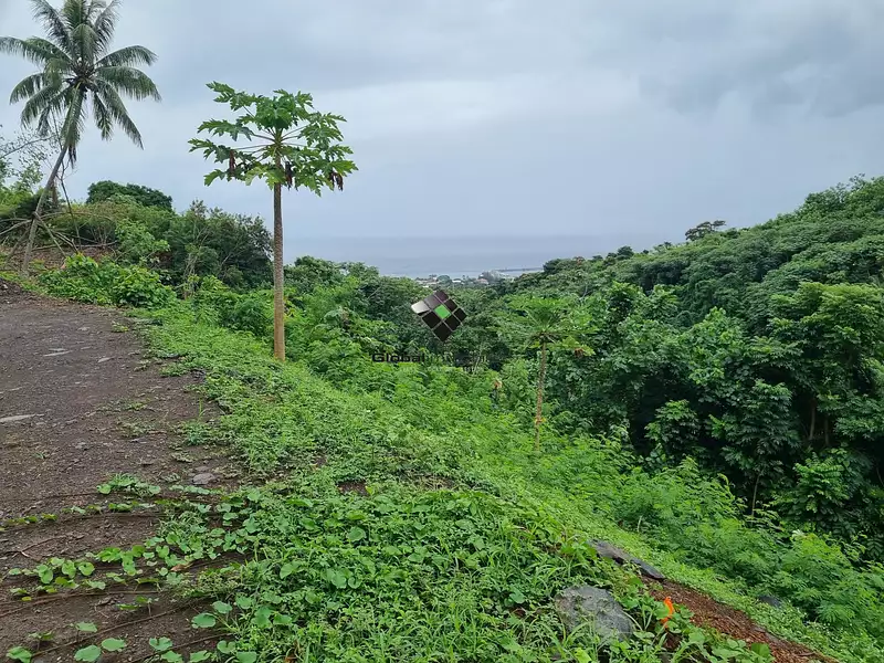 Lotissement Pamatai Hills une parcelle en pente de 1 104m² à une altitude de 251,8m avec vue mer et montagne, le lotissement vous propose une salle de sports et des chemins de randonnées.