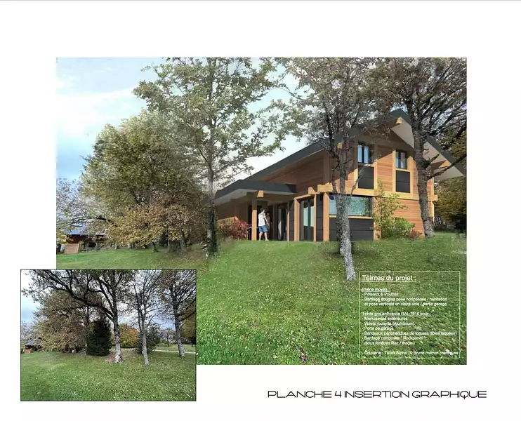 Terrain constructible avec permis de construire (Maison + Piscine) purgé de tous recours avec une validité jusqu'à janvier 2027. Le projet est une maison de 120 m2 habitables pour 155 m2 utiles, dont un garage de 29 m2.