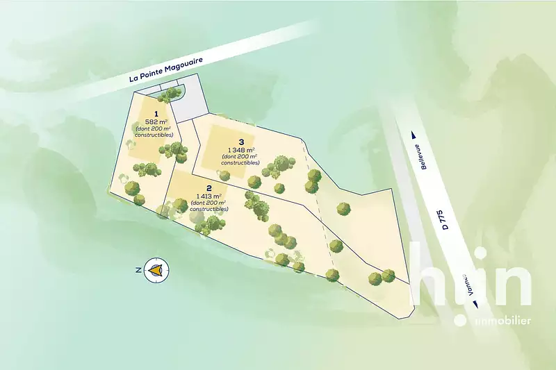 Seulement 3 terrains viabilisés, de 582 à 1 413 m2, libres de constructeur