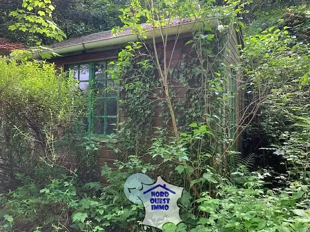 Terrain de loisirs en bordure de rivière d'une surface de 1 436 m2 avec partie plane et partie pentue, non accessible en véhicule accès piéton uniquement avec petite construction en bois de 9 m2 environ.