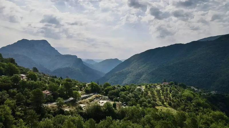 À vendre, terrain constructible de 1 605 m² situé à Pierrefeu, dans l’arrière-pays niçois.
