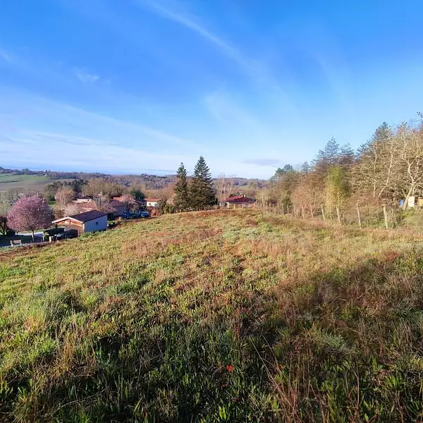 Terrain constructible de 1630 m² avec une belle vue dégagée, au calme, en fond d'impasse, orienté au sud, desservi par un chemin communal.