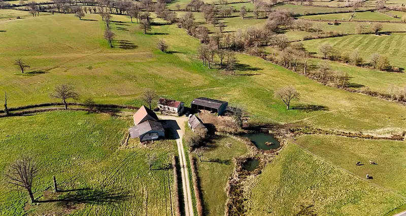 Située dans le département de l’Allier (03), à 1h20 de Clermont-Ferrand et 1h30 de Bourges, cette propriété se compose de deux îlots fonciers relativement regroupés, distants de 6 kilomètres au maximum. L’exploitation est très bien entretenue et se compose comme suit : **1. Partie immobilière :** - Surface totale : 170 ha 90 a 82 ca, dont une partie drainée (25 ans). - Terres arables : 148 ha 36 a 46 ca - Prairies permanentes (retournables) : 22 ha 01 a 30 ca - Sols divers : 35 a 48 ca - Terrains d’agrément : 10 a 18 ca - Bois : 74 ca - Une maison d’habitation comprenant une cuisine équipée, un salon, une salle d’eau, des toilettes, quatre chambres. Chauffage électrique (possibilité d’installer un chauffage au bois). Actuellement louée. - Une ancienne stabulation (hangar métallique) - Une grange traditionnelle utilisée comme espace de stockage - Une dépendance à usage de stockage L’ensemble immobilier est vendu en l’état. **Prix de l’immobilier (foncier + bâti) : 1 213 849 €** **2. Éléments appartenant à la société d’exploitation** (Ces éléments seront vendus sur facture à la date de signature de l’acte authentique concernant le foncier et le bâti) : - Droits à paiement de base (DPB) à la valeur unitaire de 111,65 € (année 2024) - Matériel : - Tracteur Fendt 380 GT 5700 heures - Tracto-pelle Case 580 Super LE 6700 heures **Prix du matériel et des DPB : 100 530 € TTC** **Prix total de l’ensemble : 1 314 379 €** La vente sera réalisée libre de toute occupation (hors maison d’habitation). La jouissance du foncier agricole interviendra au fur et à mesure de l’enlèvement des dernières récoltes.