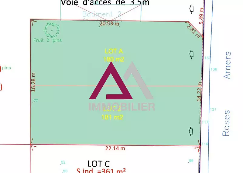 Sous compromis : Terrain plat de 180 m2, constructible, dans un secteur calme et recherché. LOT B