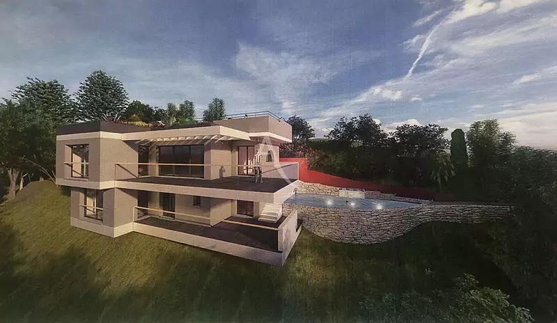 Nice Nord, Beau secteur résidentiel, Terrain de 1930m² en restanques, orienté principalement ouest, et sud. Vendu avec un permis approuvé pour une surface de 130m² environ avec piscine et garage.