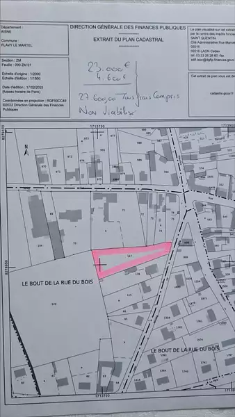 | Prix de vente : 24 656 € | Prix au m² : 12 € / m² |