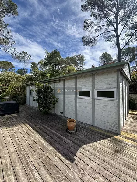 Frejus - domaine du pin de la legue frejus - domaine du pin de la legue 207 parts sociales de terrains situes au calme, sur les hauteurs. terrain compose d'une spacieuse terrasse en bois, d'un chalet avec grand salon et climatisation, coin repas et cuisine equipee. une chambre double, possibilite d'une autre chambre, salle d'eau avec wc a part. places de parking. -pas d'habitation en résidence principale. -honoraires à la charge acquéreur 3%ht. -