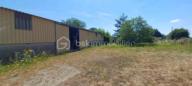 Hangar d'environ 300m² en très bon état sur dalle béton, murs en parpaings et taules, charpente métallique traitée galvanisée, isolation anti feu.