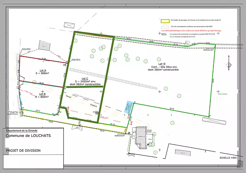 Votre agence ERA BEGLES vous propose à proximité du centre de LOUCHATS ce beau terrain à bâtir en deuxième ligne et au calme de 2450 m².