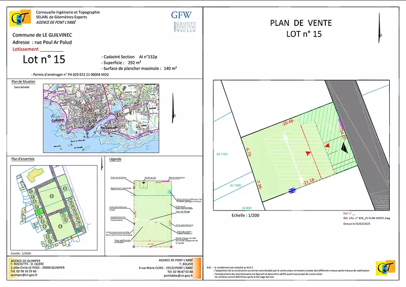 A proximité des commerces, du port et de la plage. Venez découvrir ce terrain en lotissement de 299m2 (lot n°15), livrable entre Juin et Septembre 2025. Le terrain sera viabilisé et raccordable au tout-à-l'égout.