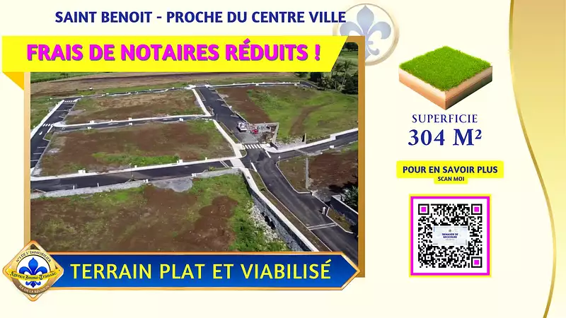 Imaginez-vous construire sur ce TERRAIN parfaitement situé dans les BAS DE SAINT-BENOÎT, où vous profiterez d'un CADRE PAISIBLE et D'UNE VUE AGRÉABLE. Ce terrain de 304 m², entièrement CONSTRUCTIBLE, offre une opportunité unique de créer votre maison de rêve, entourée par un ENVIRONNEMENT RÉSIDENTIEL chic et calme, avec toutes les commodités urbaines à proximité.