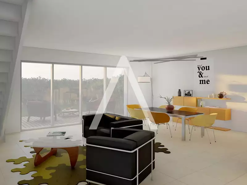 Au rez de chaussée, vous retrouverez une entrée qui vous aménera vers une cuisine ouverte avec un spacieux salon séjour de 47m2 donnant sur une belle terrasse avec jardin.