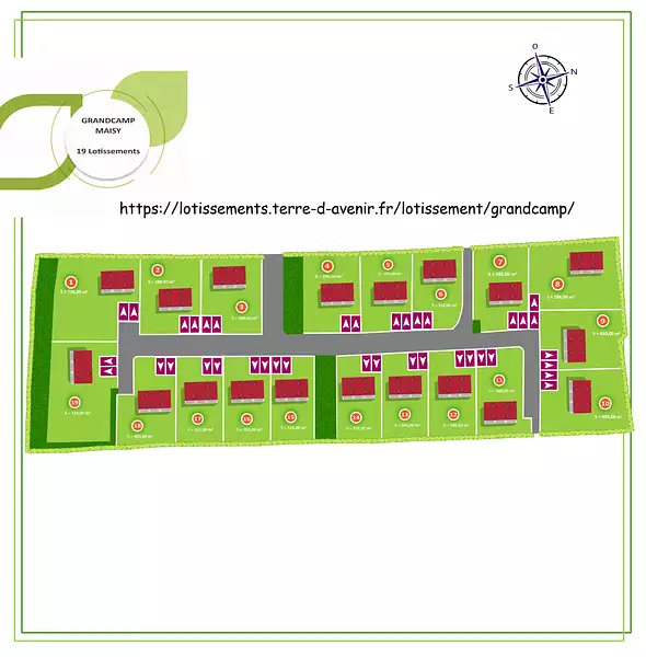 Lotissement comprenant 19 lots compris entre 319 et 726 m², parcelles viabilisées avec raccordement au tout à l'égout.