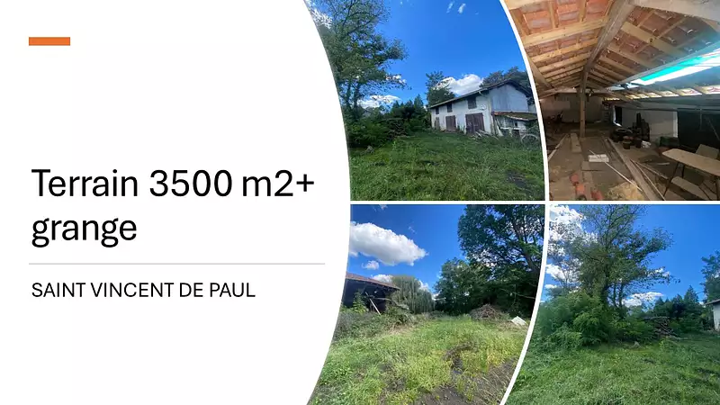 Belle opportunité pour ce terrain de 3500m2 constructible, non viabilisé, divisible, avec grange en bon état d'environ 80m2 avec étage. CU positif, tout à l'égout en bordure.
