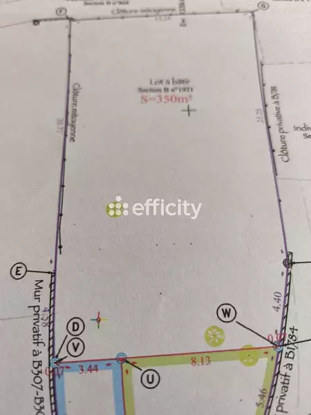 - Ce terrain est livré borné et viabilisé tous réseaux avec tout a l égout, eau potable , évacuation eaux pluviales , EDF et la fibre (+ arrivée gaz, compteur a créer au besoin).
