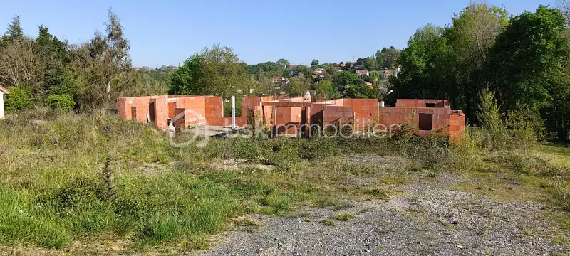 HAUT DE SERRES CASTET , dans une impasse , Terrain de 1800 m² viabilisé ( EAU , ELECTRICITE ) avec un début de construction avec briques monomurs ( Surface plancher 168 m² sur vide sanitaire ) . Raccordement au tout à l ' égoût en bordure .