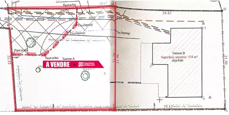 Issu du détachement d'une parcelle, le lot proposé présente une surface totale de 538 m², dont 360 m² de surface utile destinée à la construction. Le terrain bénéficie d'une emprise au sol autorisée de 50 %.