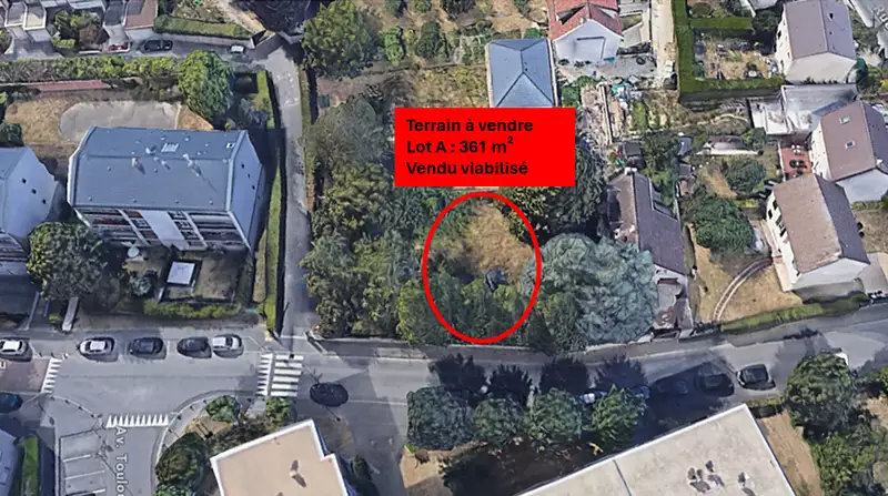 Lot A : 341 m² de terrain situé Quartier de l'Église. Vendu viabilisé (5.00 % honoraires TTC à la charge de l'acquéreur.)