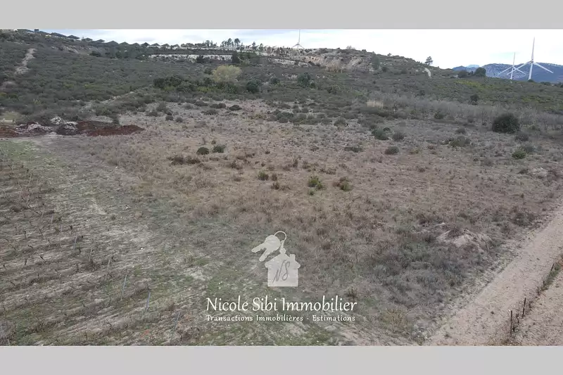 Le deuxième d'environ 21085 m², en friche, en grande partie plane, vue dégagée sur les Corbières et les fenouillèdes, ligne électrique passe sur les parcelles, accessible par chemin goudronné. (Pas d'eau).
