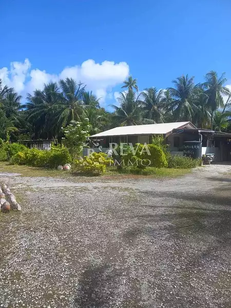 Situé sur l’atoll de Takapoto, dans les Tuamotu, découvrez cette maison en bois de type F2 de 60 m² avec terrasse couverte, implantée sur un terrain arboré de 3 960 m².