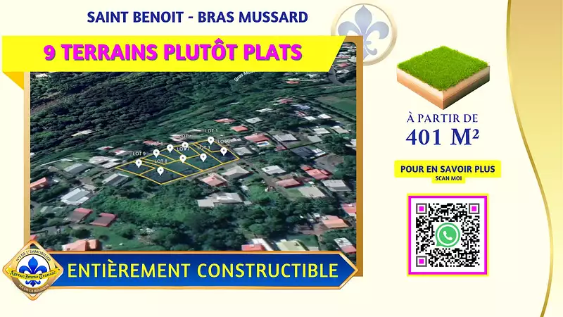 Ce terrain entièrement constructible, situé dans un secteur calme et résidentiel de Saint-Benoît, à moins de 100 mètres d'altitude, entouré de villas de luxe, pourrait être votre prochaine acquisition !
