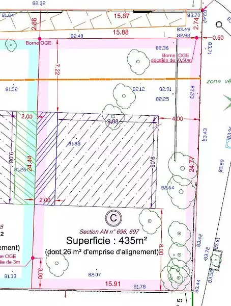 Terrain à bâtir de 435 m² idéalement situé dans le quartier du Clos Giffier. Zone UD du PLU. Façade : 15,91 m. 108 m² de surface au sol possible.