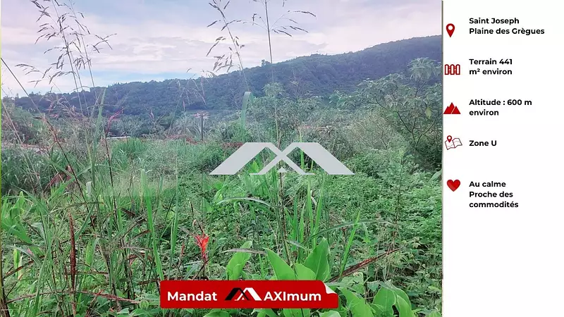 MAXImmo vous propose une parcelle d'environ 441 m² à Saint-Joseph, Plaine des Grègues !
