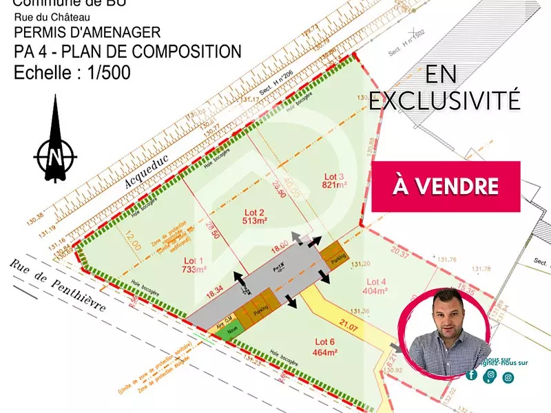 Votre Agence Stéphane Plaza immobilier Anet vous présente en exclusivité à la vente sur la commune de Bu, dans résidence privée terrains clos à Bâtir de 404 à 821 m², entièrement Viabilisés en eau, électricité, téléphone avec la fibre et tout à l'égout. Ils seront clôturés. Borné avec plan du géomètre à disposition. Libre constructeur. Possibilité de construction 8.5m u faitage. PTZ Zone B2. Pas de Bâtiment de France ! Permis d'aménager obtenu et purgée de tous recours. Ecoles de la maternelle au collège, commerces, médecins, pharmacie et commodités sur place. Accès à la gare de Houdan ou Marolles rapide (45 min direction Montparnasse et Versailles Chantier) Accès très rapide N12. A partir de 95.900 euros REF : 1900