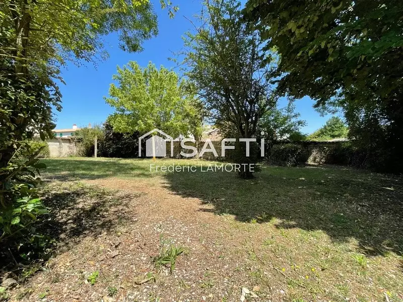 Très beau terrain arboré et rectangulaire d'environ 490m2 situé en plein coeur du centre bourg de Sainte-Soulle avec toutes les commodités accessibles à moins de 5min à pied.
