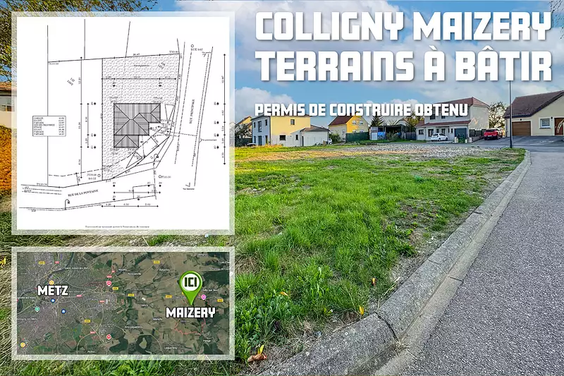 Terrain à bâtir non viabilisé de 5a 24 ca à COLLIGNY MAIZERY d'une surface de plancher de 137 m² avec permis obtenu et purger de tous recours. le projet est composé au RDC d'une pièce de vie de 51 m², un WC séparé, un cellier, un garage de 18 m², un cellier de 8 m², à l'étage : 3 chambres dont une suite parentale avec dressing et salle d'eau, une salle de bains et un WC séparé. (plans joints).