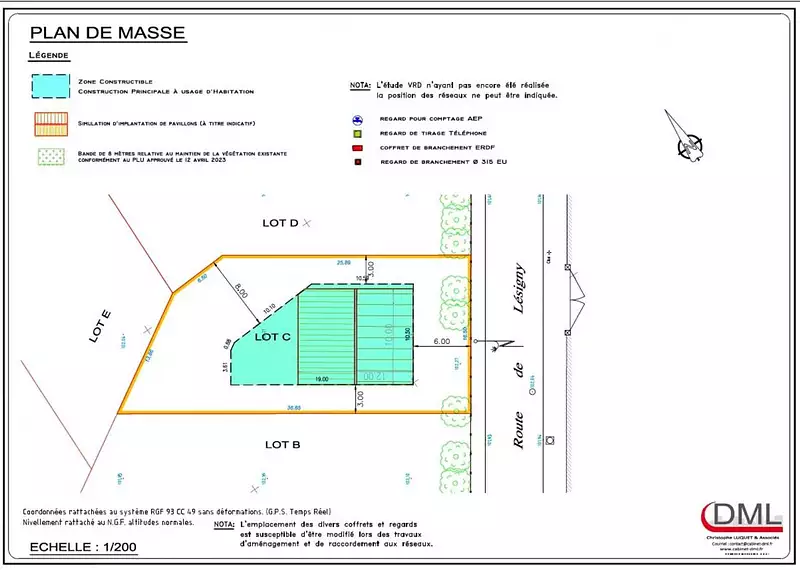 Dans le quartier des bruyères, venez découvrir ce projet de construction de pavillons individuels. Lot C terrain à bâtir de 539m² avec façade de 16,50m.