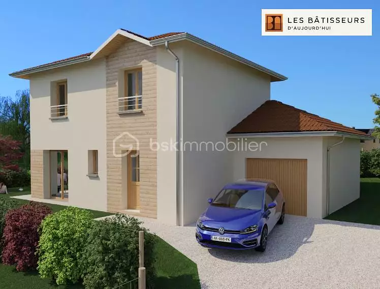 Une étude de construction d'une maison individuelle d'environ 100 m² habitables avec jardin et terrasse a été réalisée avec le constructeur « Les Bâtisseurs d'Aujourd'hui ».