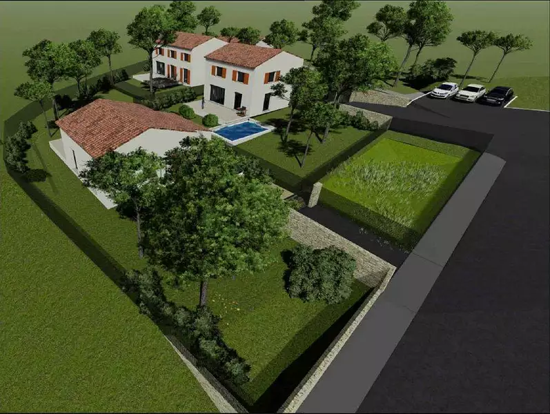 Le terrain est viabilisé et situé dans un environnement privilégié en zone pavillonnaire. La zone est boisée et calme, surplombée par des vignes.