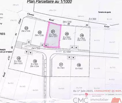 Venez découvrir ce lotissement avec terrains viabilisés. Ici le lot 21 pour une superficie de 603 m2. Comprend 2 places de parking exterieur.