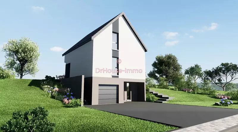 En image un exemple de construction d’une maison individuelle de 104m2 avec un sous-sol sol complet au prix à partir de 485000€ maison+terrain environ en prêt à décorer sans les extérieurs (pour un terrain au prix de 121000€).