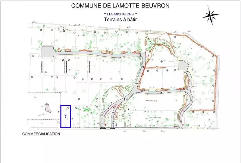 LAMOTTE BEUVRON, lotissement Les Michalons, venez réserver votre terrain à bâtir, libre constructeur. Lot N°1 d'une superficie d'environ 617m². Etude de sol réalisée. Possibilité maximale d'occupation des sols de 150m². Terrains en premier rang. Pour de plus amples renseignements nous sommes à votre disposition. Ce bien vous est présenté à la vente par Bernadette Julien-Binard E.I. Immobilière REMANGEON.