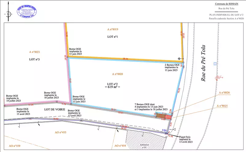 Terrain accessible directement par la rue donc frais de viabilisation limités !, façade 16,05 m, profondeur de plus de 28 m, terrain borné, exposition Ouest, environnement calme, dégagé et verdoyant. Domaine récent et très agréable.