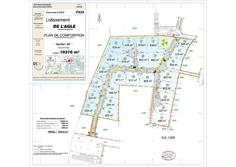 Situé à 3mm de la sortie Artix de l'autoroute Bayonne Pau Toulouse et Bordeaux, près de l'aéroport international Pau-Pyrénées, le village de Artix est une porte ouverte pour l'aventure & le loisir en Béarn. A une 40mm des pistes de ski des Pyrénées et 1h des plages de l'Océan Atlantique, à la périphérie de Pau, dans un environnement calme et à proximité de toutes les commodités, le lotissement de l'Agle à Artix propose 16 lots de terrain à bâtir, libres de constructeurs, d'une surface de 434 m2 à 696 m² à partir de 48 000 euros. Les terrains sont entièrement viabilisés : Eau potable, Electricité, Téléphone, Tout à l'égout. Renseignez vous sans tarder.