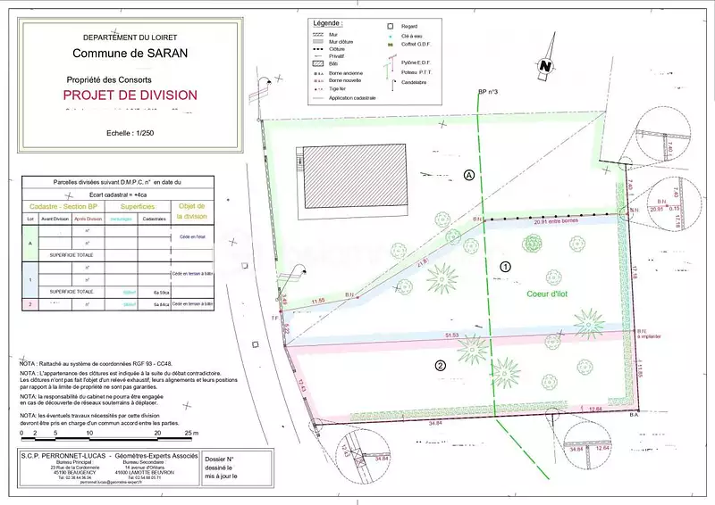 Terrain de 659 m² (terrain n°1 entouré de bleu) sur la commune de Saran, proche du quartier Sablonnières.